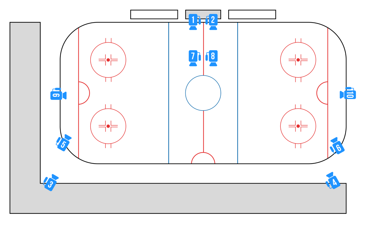 Правое закругление - вбрасывания, кадры игры в левой части площадки